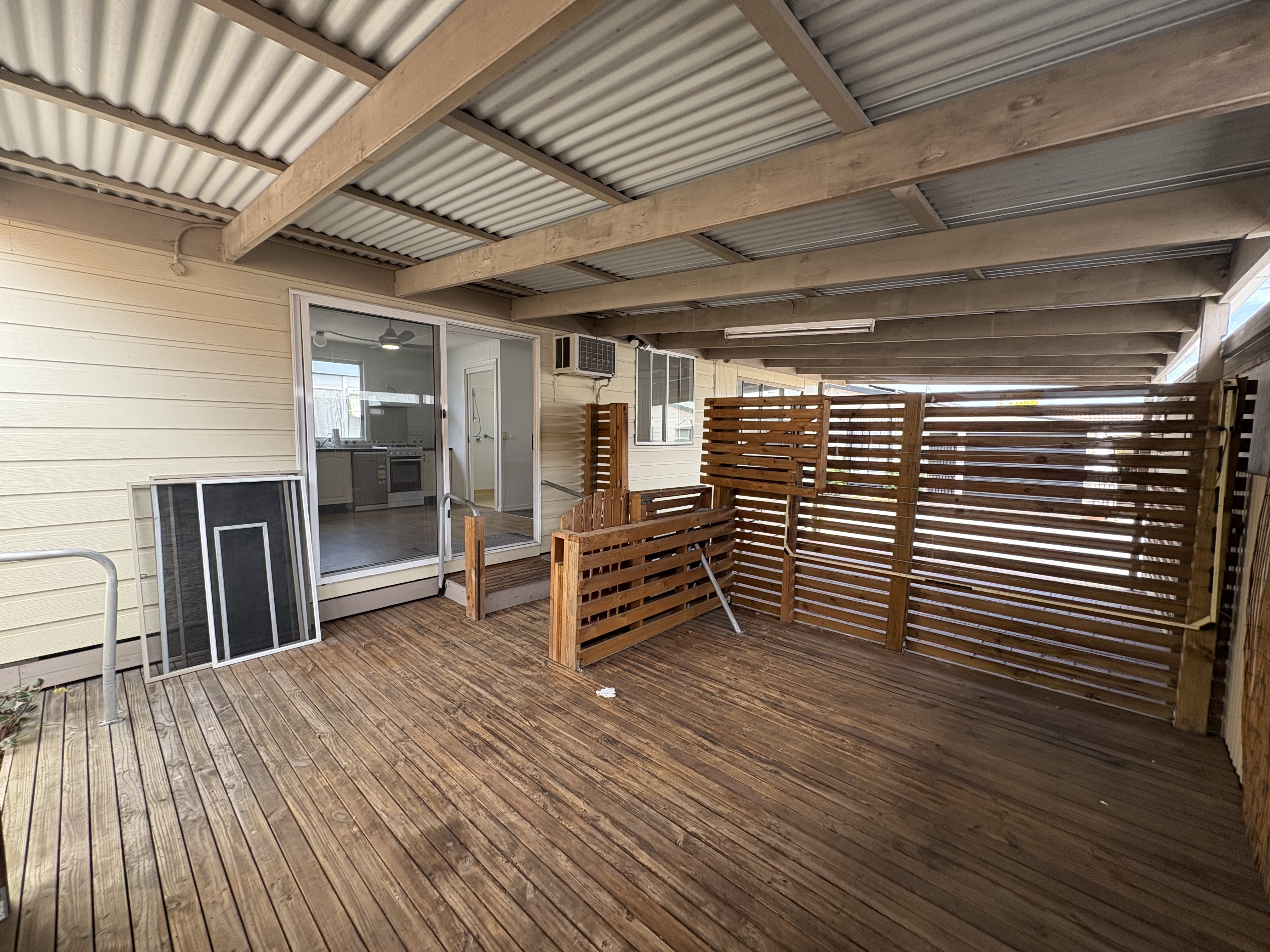 The private covered deck area offers a place to sit outside and can be securely closed off for a pet.