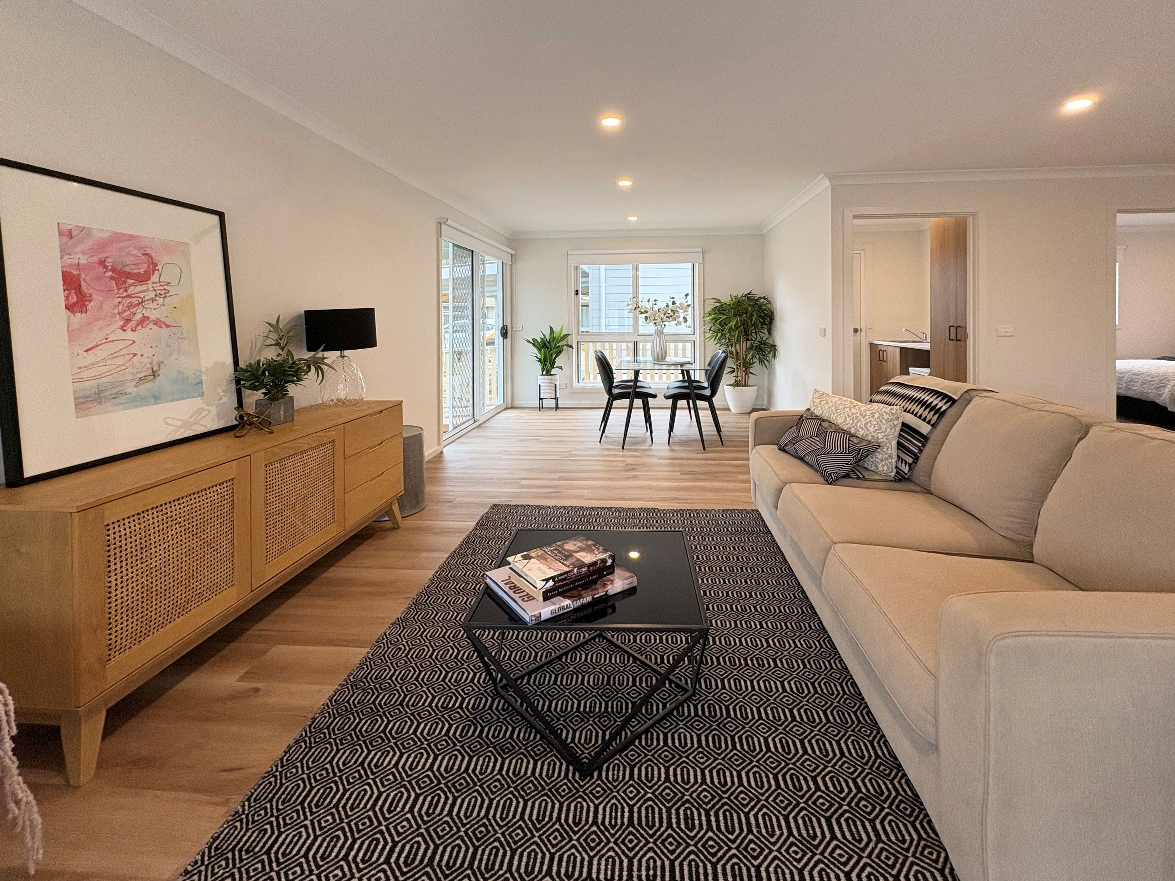 The Astaire features two generous sized bedrooms and a large kitchen with a breakfast bar. The spacious open-plan living, separate laundry and front deck makes this home stand out from the crowd. Topped off with fine quality finishes and the ability to modify the home to your needs its an opportunity you don’t want to miss.