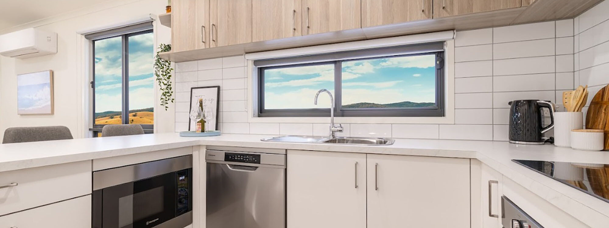 - Raked ceiling in the open plan kitchen / dining / living area